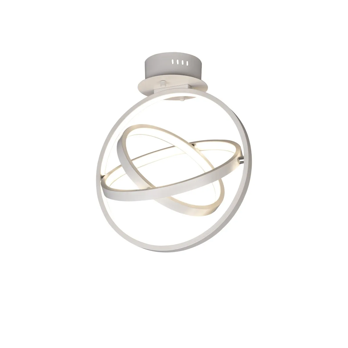 Встроенные светодиоды размещены в акриловом диффузоре внутри каждого кольца, образуя световые обручи и придавая образ космичности и инновации. Регулируемые подвесные светильники доступны в трех размерах. коллекция также предлагает фиксированный потолочный светильник и настольную лампу.